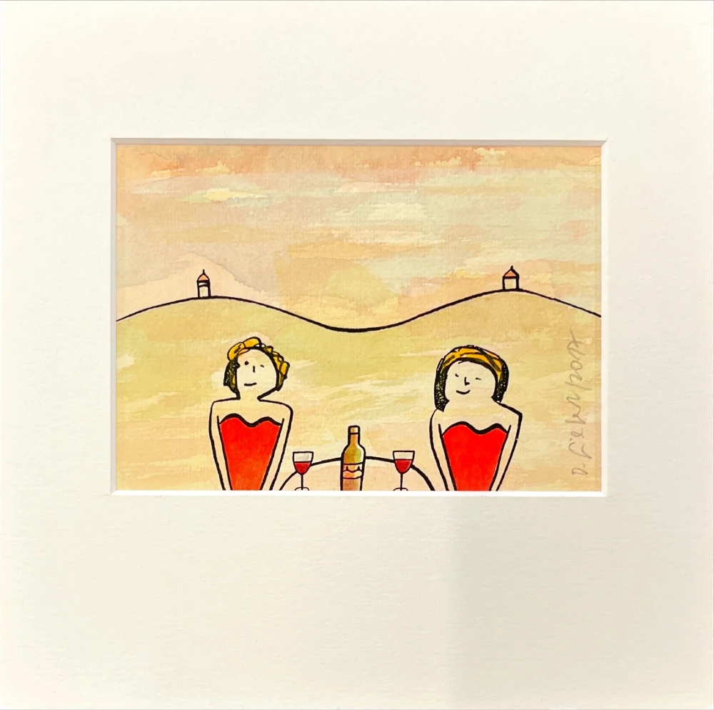 Charmante Originalzeichnung von Dieter Gilfert . Mit seiner typischen Leichtigkeit und einem humorvollen Motiv lädt das Werk zum Schmunzeln ein. Die Zeichnung ist im Passepartout Größe 20×20 cm präsentiert und eignet sich hervorragend als besondere Geschenkidee oder als liebevoller Blickfang für Zuhause.