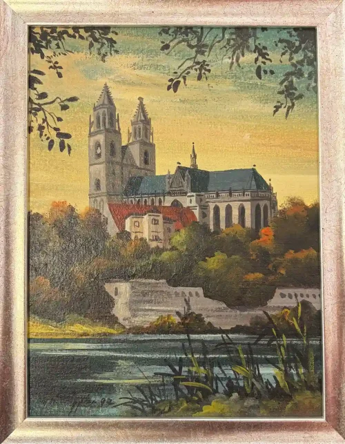 Originalgemälde „Magdeburg“ von Raffaele Fiore. Format 120 x 100 cm, Öl auf Leinwand, handgemalt, signiert und ein echtes Unikat. Detailreiche Stadtansicht mit beeindruckender Ausstrahlung.